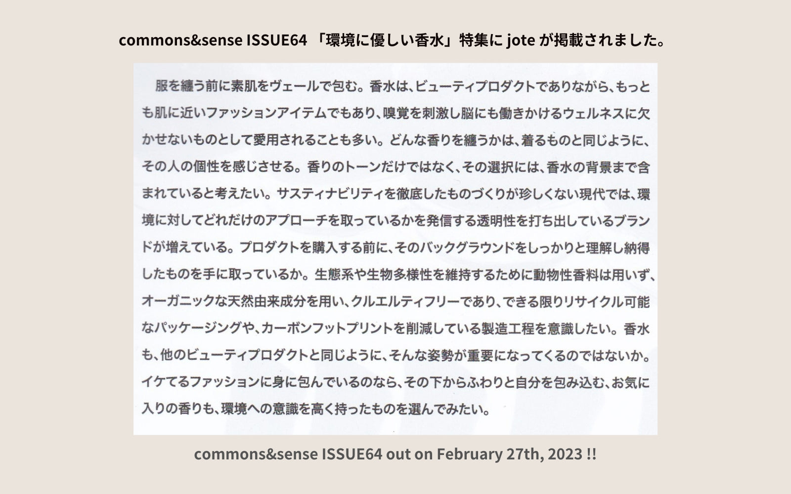 jote Perfumeは、限りなく自然であることにこだわっています。